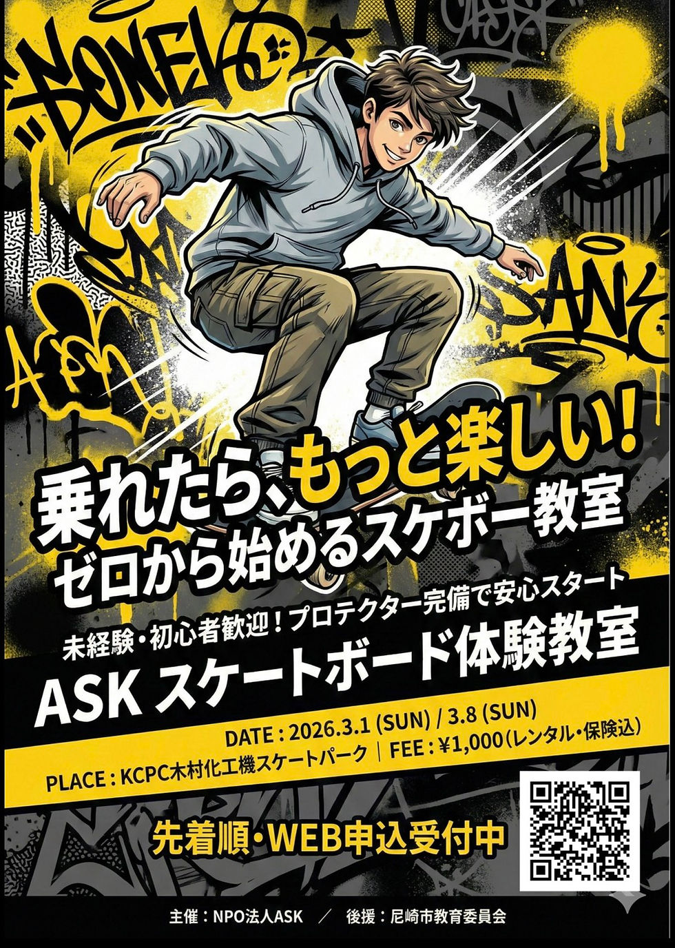 そんな小・中学生のみなさん!ASKの体験教室でスケボーデビューしませんか?